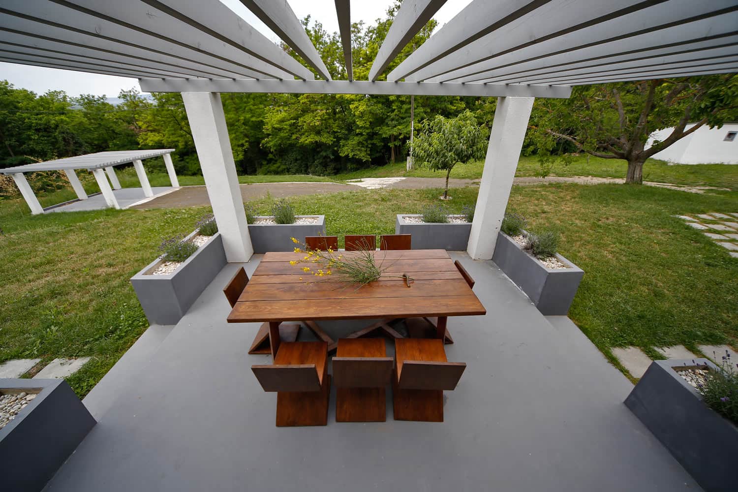 Neben dem Essen im Innenbereich verfügen wir über eine Pergola im Freien sowie einen separaten Grill- und Essbereich auf einer Anhöhe, so dass Sie die Aussicht um sich herum vollends genießen können.